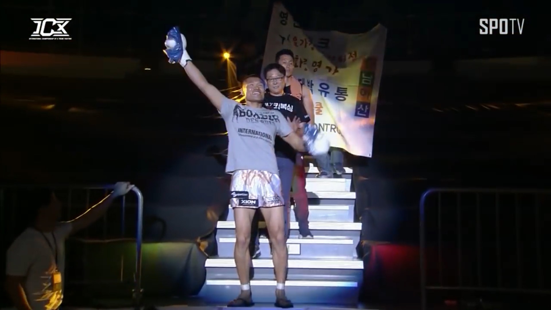 这位昔日叫嚣韩国第一的韩国勇士,还是改不了他那嘚瑟的毛病,出场还是一如既往的骚包,扭着屁股和观众打招呼,隔着屏幕小编都能够感受到他那嚣张的气焰啊!实在没办法看下去了,反观咱们的张扬,却是表现得非常谦虚低调,默默的进入赛场。