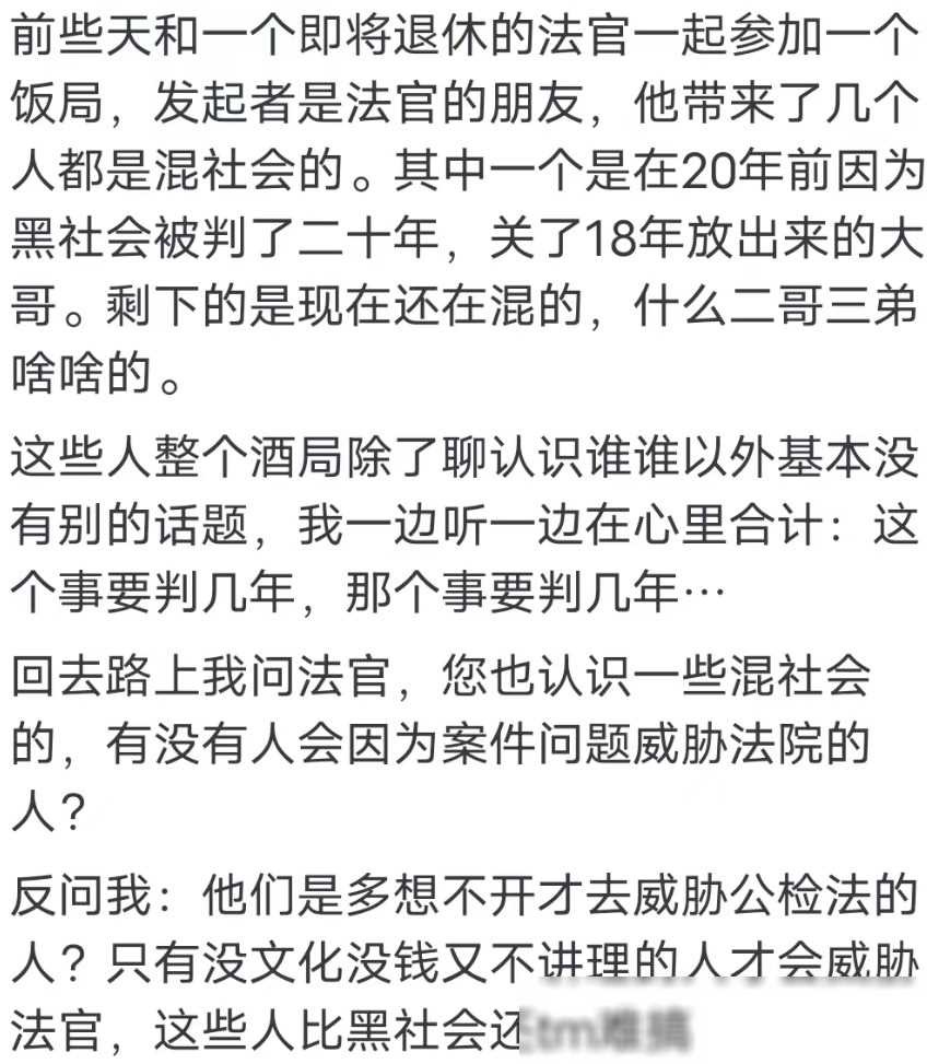 法官们会害怕被黑社会威胁吗?网友:大妈们都比他们要可怕