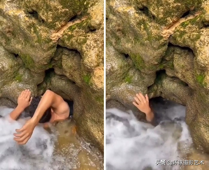 人进入狭窄的水下洞穴