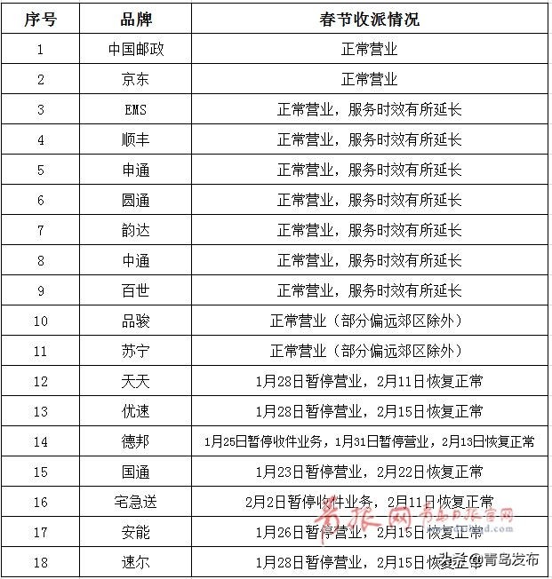 官方安排来了 今起青岛7家快递企业陆续暂停营业
