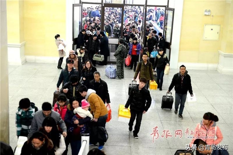 △春运首日,青岛火车站人流涌动,旅人满载而归。记者 傅学军 摄