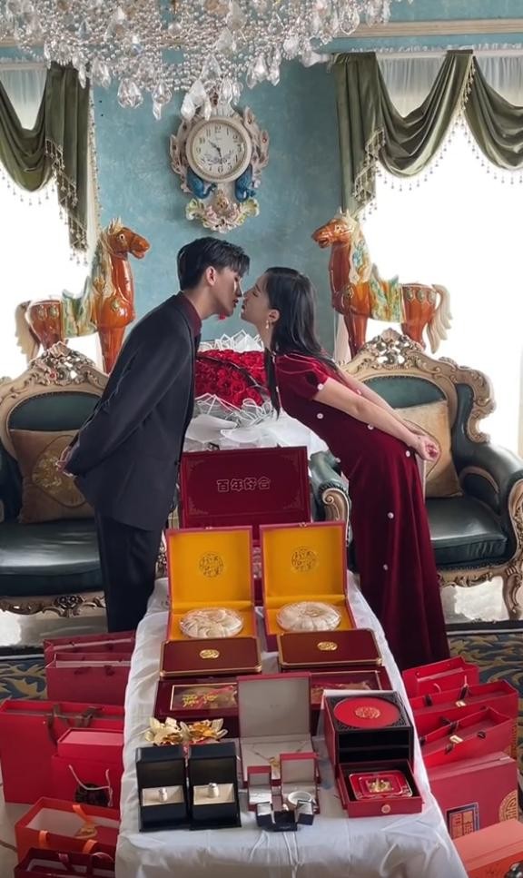 按照习俗,订婚时男方会给女方备好彩礼,包括三金以及其他的礼金,看的是男方的心意。罗西给临界十缨的彩礼,可谓十分豪华,两盒金丝燕窝,两盒鱼胶,一对龙凤呈祥的黄金,一对钻戒,纯金的项链手镯戒指,还有一个杨颖同款的婚戒。