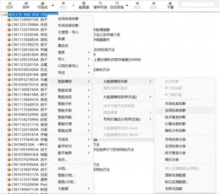 大数据模型关联主要包括:数据投影、正交投影、分类、PCT优化器等,利用模型进行专利筛选、评估、预测等各个方面分析应用。