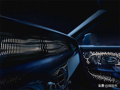 劳斯莱斯还针对这一艺术设计做了特别的说明文案,放置在手套箱内,与之一起的还有爱因斯坦的一段话,大概意思是过去、现在和未来的区别仅仅是顽固的幻觉。车门卡同样也是定制化产品,其上配有数以百计的照明孔,与真皮装饰形成鲜明的对比,进一步营造出深邃的夜空实景的效果。