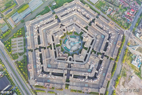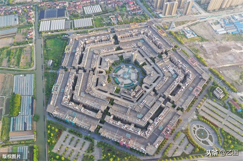 在江苏太仓市沙溪古镇境内有一座“七角大楼”,比美国“五角大楼”多了两个角,该建筑从空中俯瞰规模非常宏大,大楼外围为七栋单独的楼宇,包围着一座独立的白色“七角小楼”,成为当地标志性建筑。