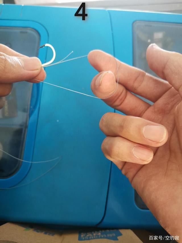 18.把两头子线拉紧(注:可以借助工具把鱼钩固定,小心鱼钩刺到手)