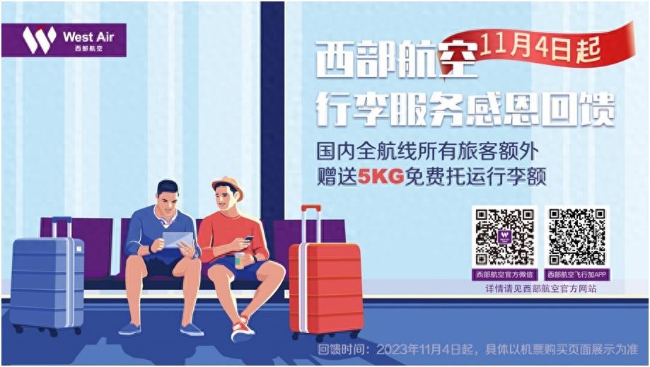 “降费”又“加额” 西部航空11月4日起开启行李服务感恩回馈