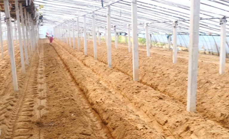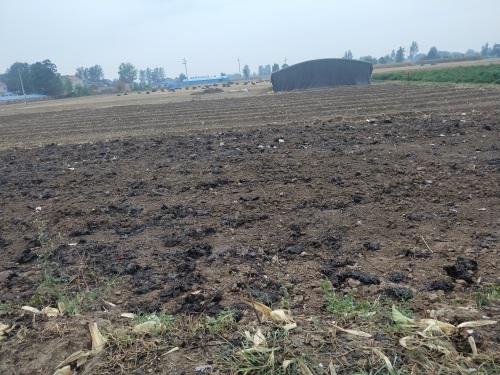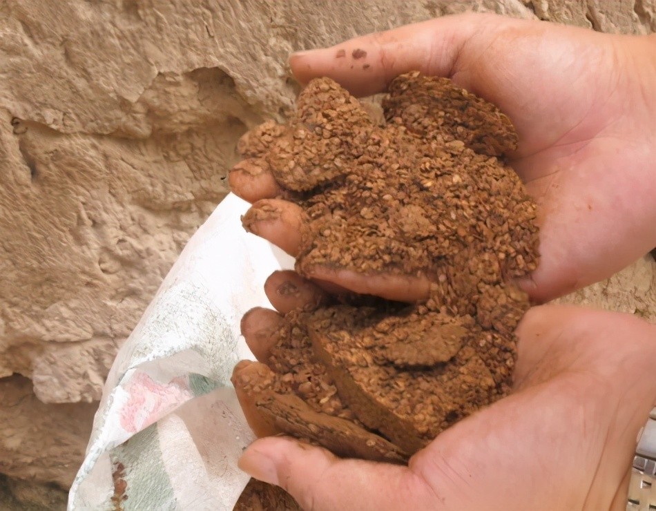 现在我们在种植时,加入了花生秸秆和生物菌,缩短了粪肥腐熟的时间。将粪便平摊到土地上,将生物菌倒入一些玉米面中,这些玉米面有很大的作用,让菌群有一个载体,还能撒均匀。生物菌能加快粪肥的腐熟,能够充分腐熟。