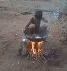 为了节约用水,只能这样洗澡。