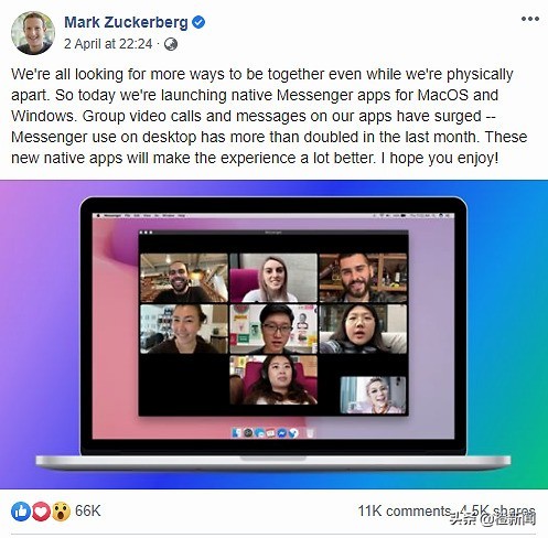 另外,因家居隔离抗疫的关系,大家对视频服务的使用量急升。Facebook为此在4月初推出了Windows和macOS的Messenger桌面版,让使用者透过电脑能轻松与多位家人、同事同时联系。而所有信息更能与行动版同步,无论在哪个平台使用都不用担心错过信息。有需要的用户可透过Microsoft Store及Mac App Store下载最新的Messenger桌面版本。