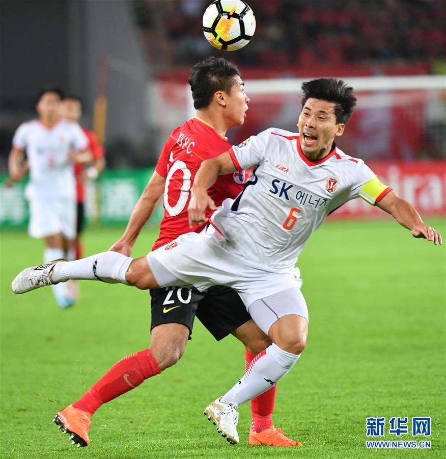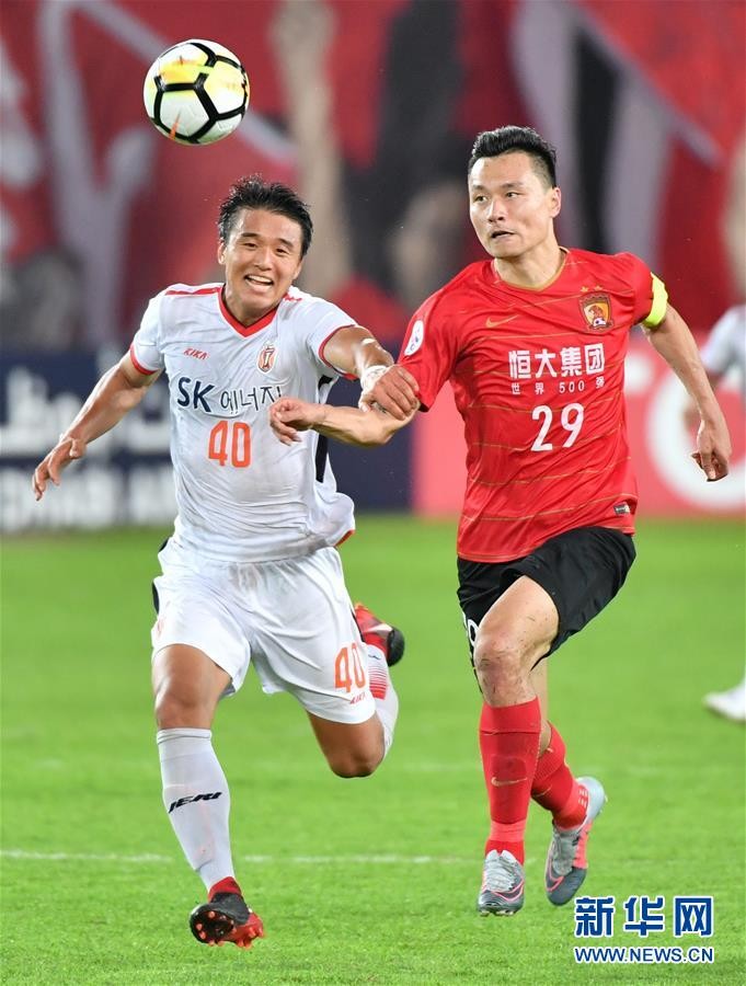 ↑3月6日,广州恒大队球员张琳芃(左)与济州联队球员陈成昱拼抢。新华社记者刘大伟摄