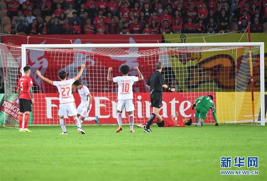 ↑3月6日,广州恒大队球员高拉特在比赛中庆祝进球。新华社记者刘大伟摄