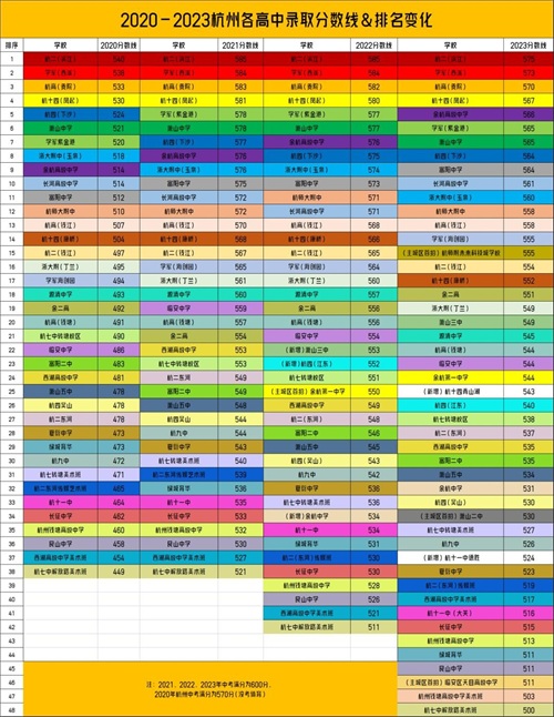 近三年杭州高中录取分数线排名变化