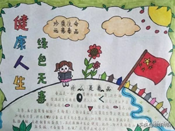 为进一步加强学校毒品预防教育工作,增强广大学生防毒、拒毒的自我保护意识,加强禁毒宣传力度,维护青少年身心健康,10月21日,海明小学组织开展了以“健康人生、绿色无毒”为主题的禁毒知识手抄报评比活动。