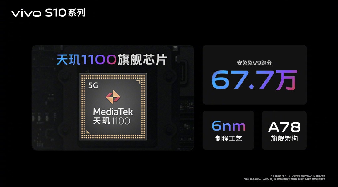 搭载6nm天玑1100处理器+LPDDR4X+ufs3.1,跑分67万+,内存融合+4G