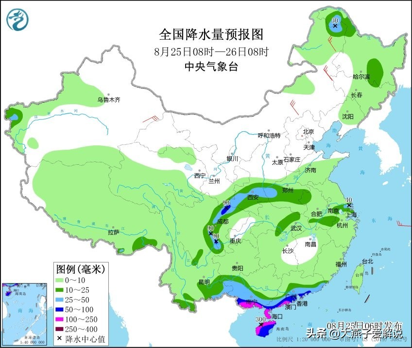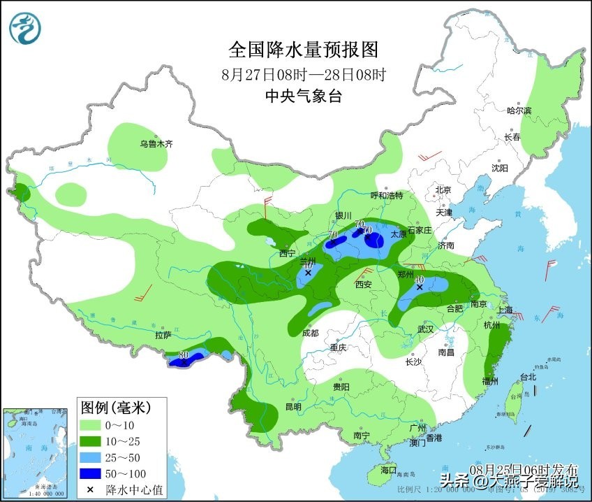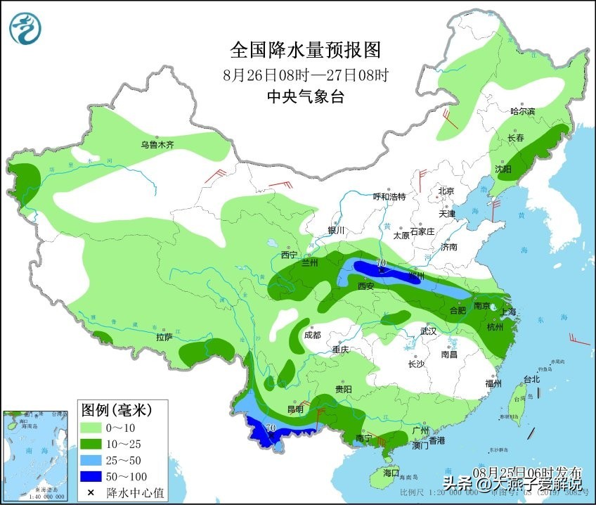 今天是8月25号,星期四,我们来看看陕西的天气变化!
