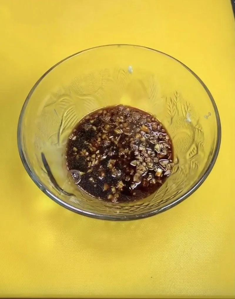 调汁:碗中依次放入少量清水、淀粉、茄子、盐、蒜、生抽、老抽、酱油,搅拌均匀。