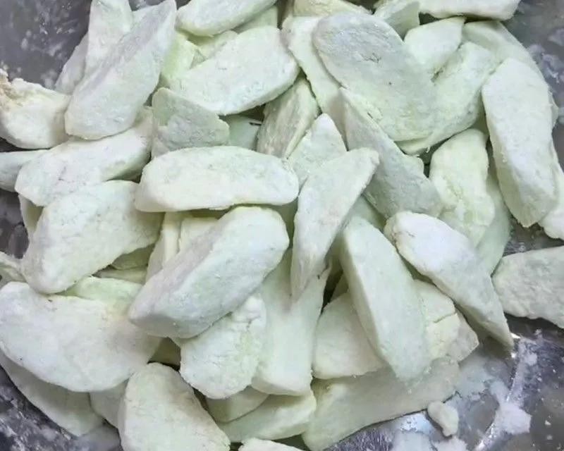 浸泡后捞出茄子清水洗净,倒出清水撒上淀粉,抓拌均匀。