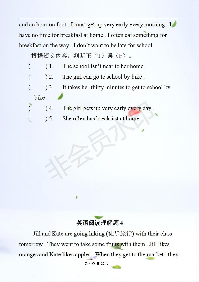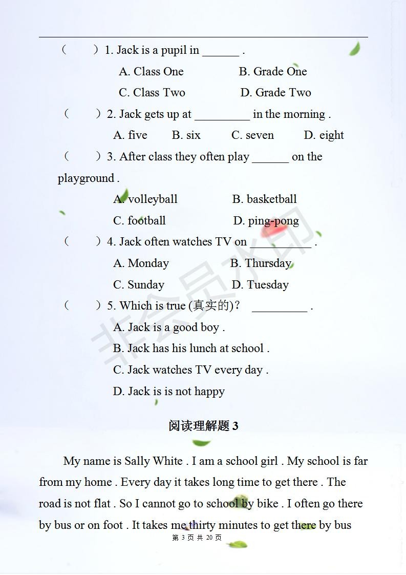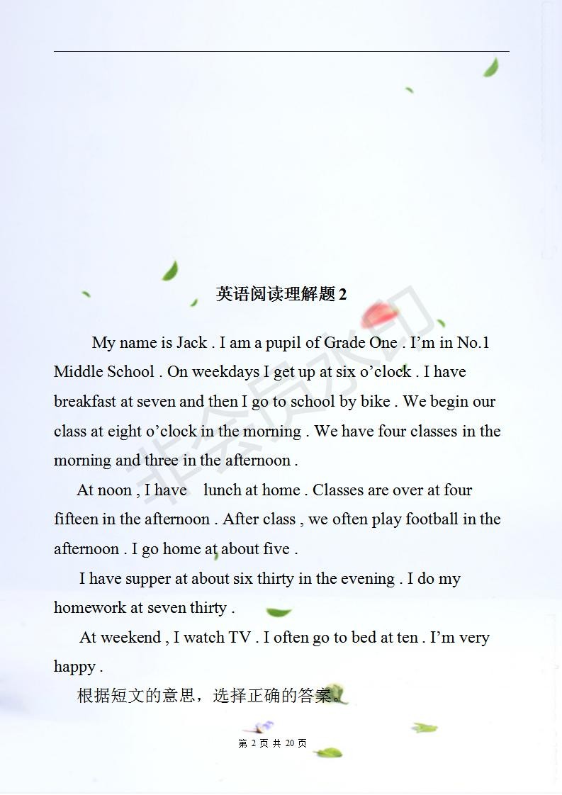 小学英语阅读理解16篇,每日一篇,成绩上涨