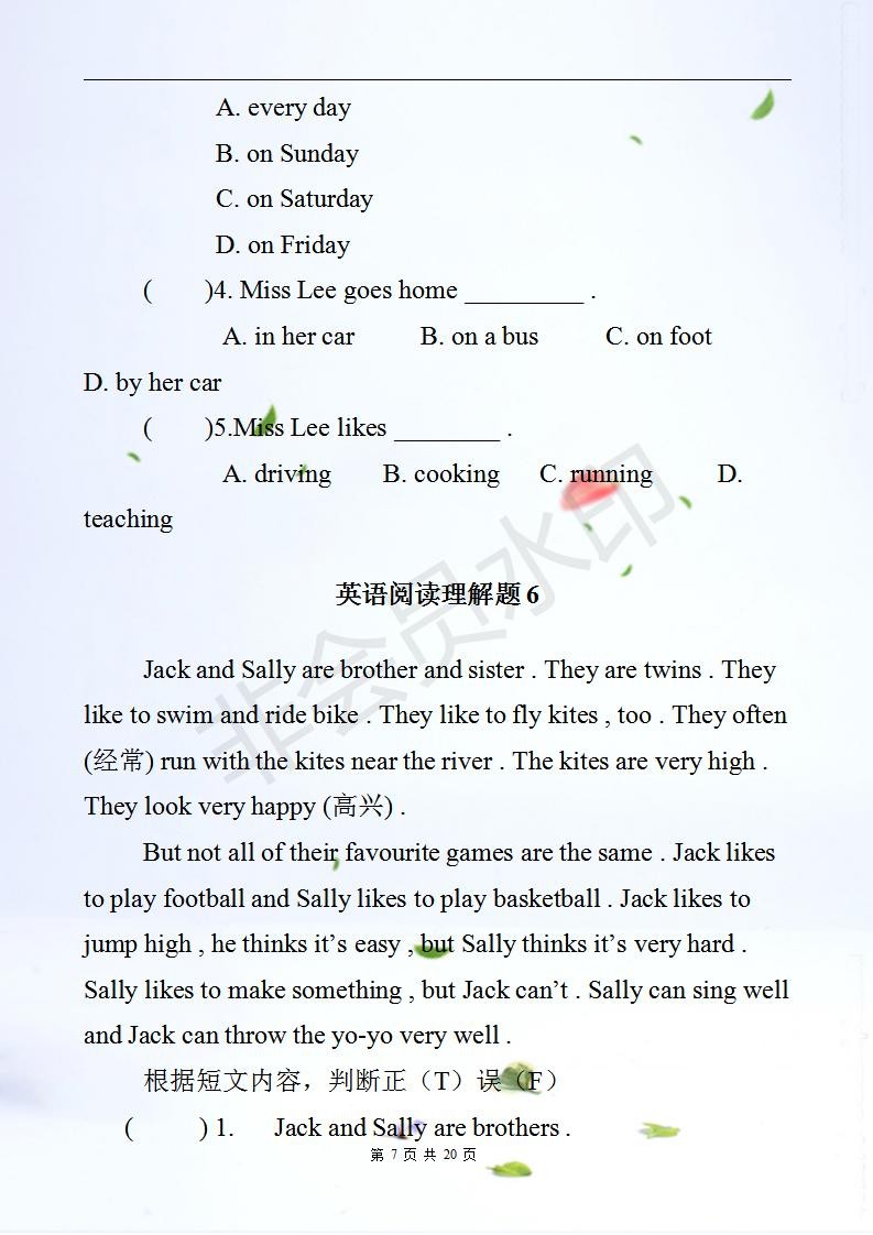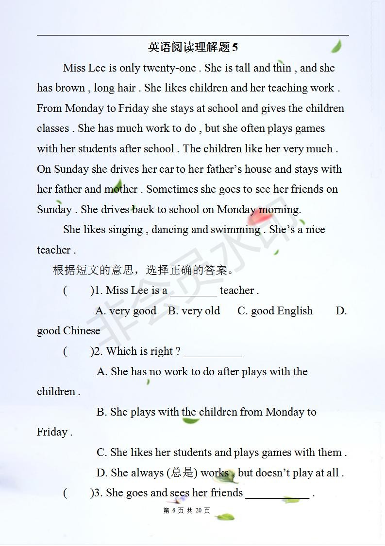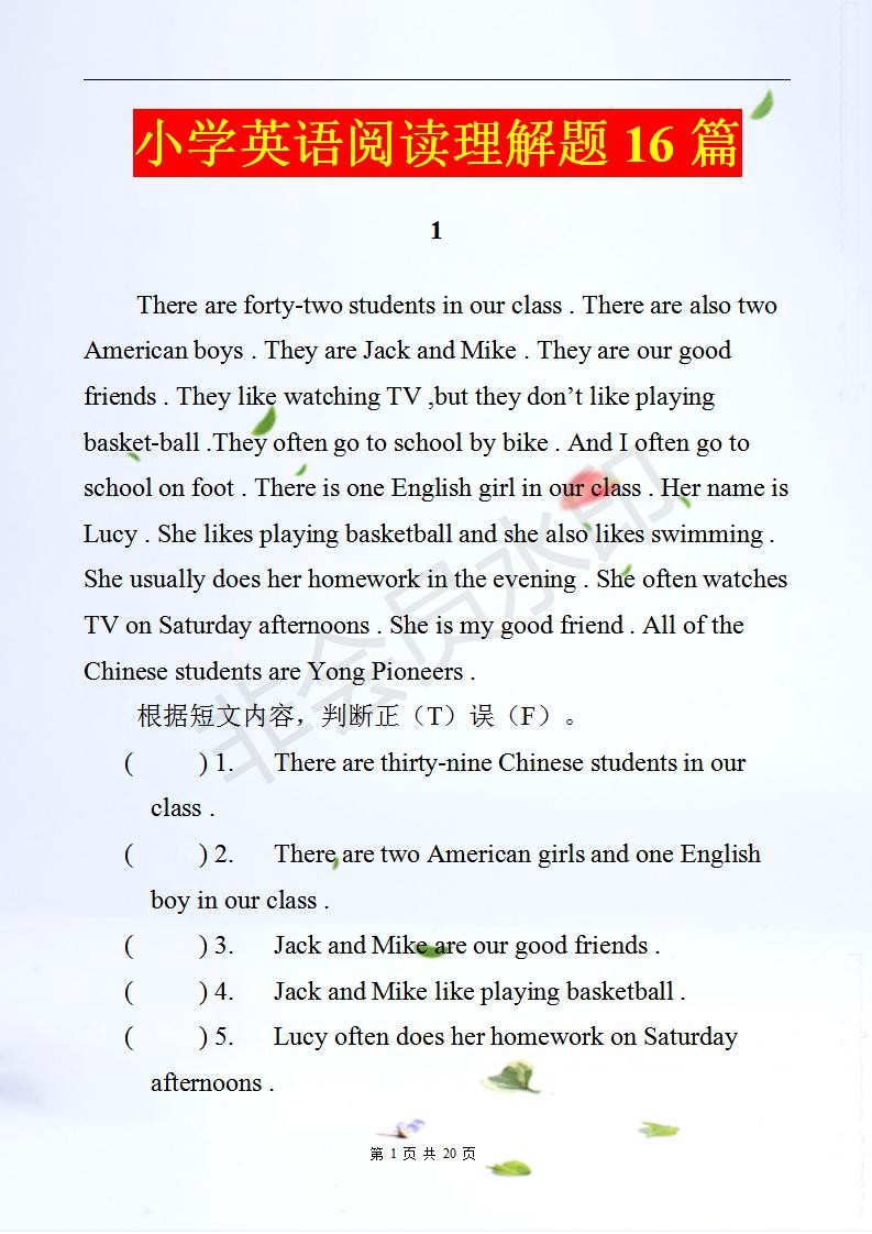 基于此,小编老师特地整理了一份小学英语阅读理解16篇,每日一篇,成绩上涨!这套题非常锻炼综合能力,希望家长们能为孩子打印下来做