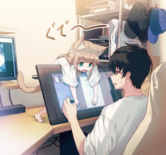 知名画师“@40hara”经常会在社交网站分享自己画的“猫猫拟人”系列的图,原型就是他自己的猫猫,看起来非常可爱!
