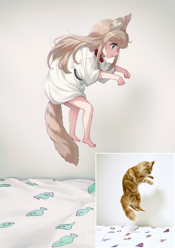 飞起来的可爱猫猫!知名画师绘制“猫猫拟人”图