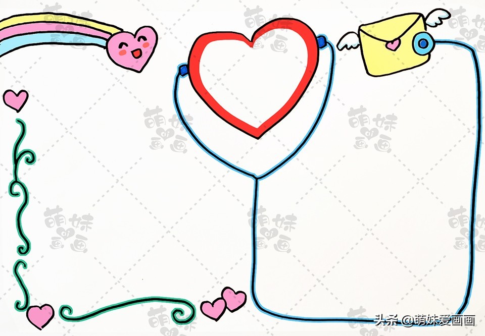 我们用一颗戴着听诊器爱心来绘制手抄报的报头边框,来呼应我们心理健康的主题。