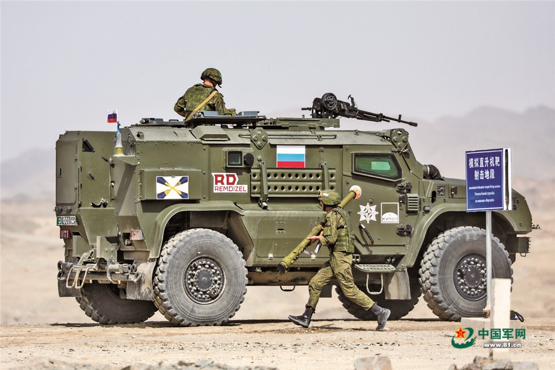 8月6日,“晴空”比赛中,俄罗斯参赛队驾驶“台风”通用轮式装甲车,使用“针-S”便携式防空导弹射击空中目标,取得第二名的成绩。