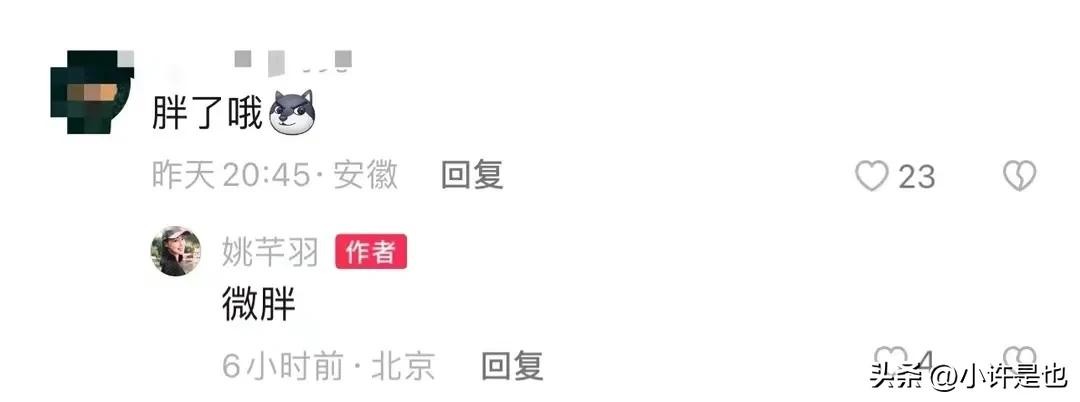 视频曝光后,不少网友说我的小草变胖了,对此,姚芊羽非常乐观的回复:微胖