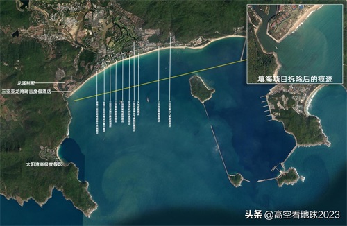 风景如此美丽的海岸线,吸引了世界各大名牌酒店云集于此,各类游艇休闲服务纷纷落户。2017年中央环境保护督察组发现三亚亚龙湾瑞吉度假酒店配套游艇码头长期侵占10.2公顷的珊瑚礁国家级自然保护区,最后被责令拆除,如今从卫星图上还能看到拆除后的痕迹。