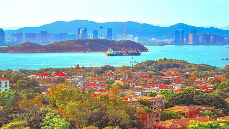 坐落于中国东南沿海的福建省,厦门是一座被大海环抱的城市。它拥有多个美丽的岛屿,其中鼓浪屿、厦门岛和南普陀寺岛最为著名。鼓浪屿是厦门的地标之一,以其得天独厚的自然风光、悠久的历史和独特的欧洲建筑风格而闻名于世。在这里,您可以漫步于石板路上,感受历史的厚重;也可以欣赏到各式各样的别墅和花园,体验异国情调。