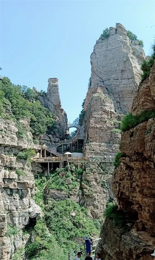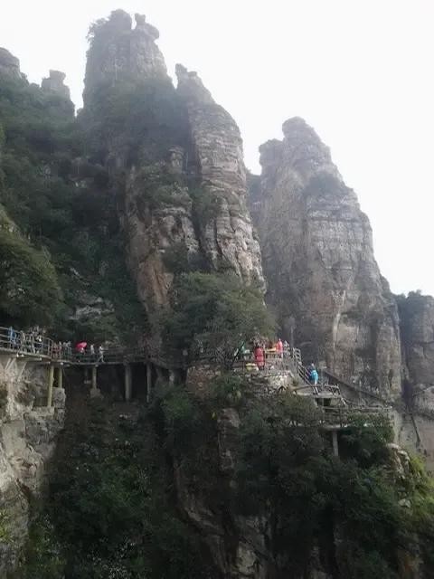 步入景区,一条蜿蜒曲折的山路引领着游客踏上探索之旅。山路或陡峭如壁,或平缓如带,隐匿于郁郁葱葱的密林之中,或暴露于嶙峋峥嵘的岩石之上。沿途,奇峰异石星罗棋布,形态万千,有的如利剑直指苍穹,气势凛然;有的似猛兽咆哮山林,威风凛凛;有的则像仙女翩翩起舞,柔美动人。这些大自然的鬼斧神工让人不禁驻足观赏,感叹于造物主的神奇与伟大。而那些顽强生长在山石缝隙中的树木,更是生命力的象征,它们在恶劣的环境中依然挺拔茁壮,展现出生命的奇迹与坚韧。
