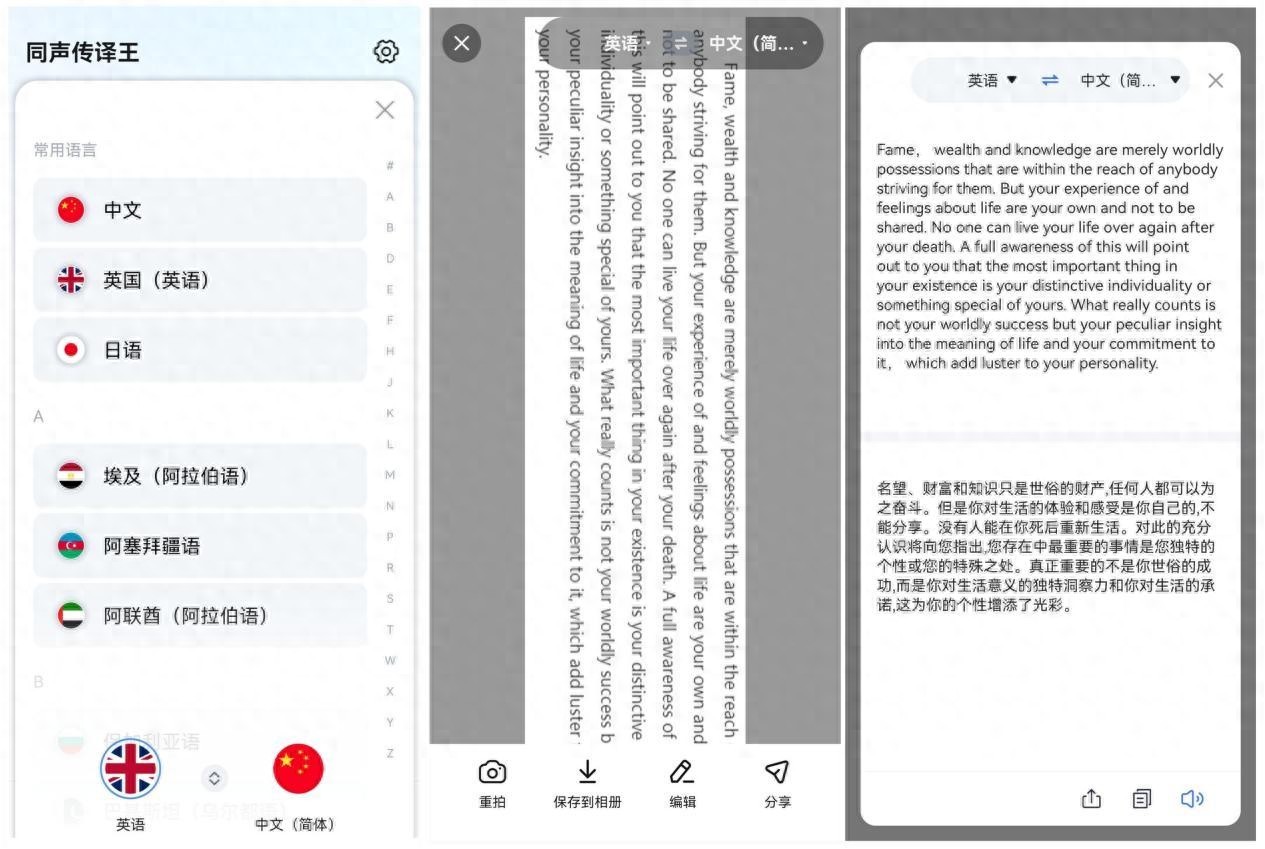 我们只需要对翻译的内容进行拍摄,选择好翻译语言后即可进行快速的识别翻译;译文的准确率以及流畅度都非常高,并且对于原文的排版也能得到很好的保留,这效率提升的可不止一星半点~