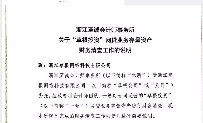 根据9月30日公布的《关于“草根投资”网贷业务存量资产财务清查工作的说明》,截至8月10日零点,草根投资待偿借款本金97.15亿元,出借人数12.96万人。