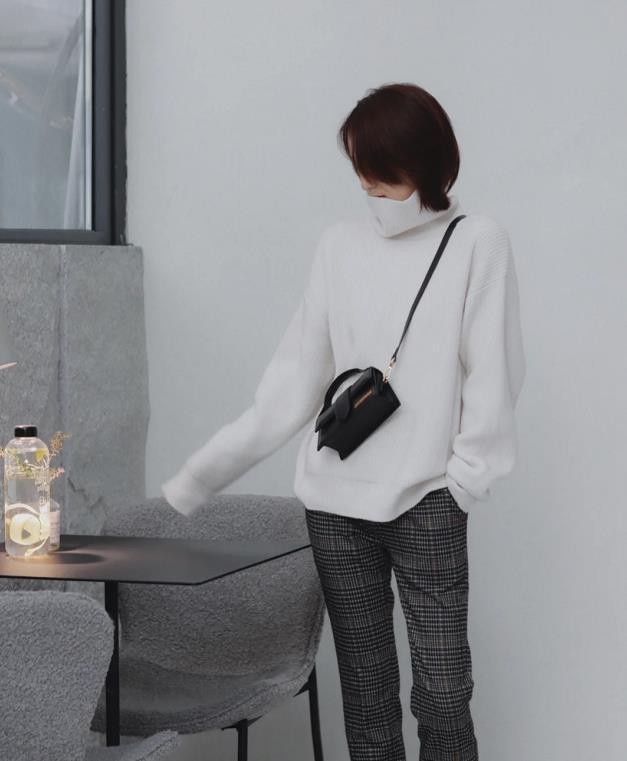 天气冷了,就是需要这么一件白色高领毛衣,无论是单穿还是作为打底,它都是很好看的。只不过这种高领款的毛衣,比较挑人,一般脖子短的女生Lily就不建议穿了,选择半高领或圆领的更友好。宽松的版型,穿在身上咋看还有种随性慵懒范,搭配了一条格纹九分裤,一简一繁的组合,就是完美。外出的时候,可以配大衣、羽绒服,又暖又美就是这么容易!