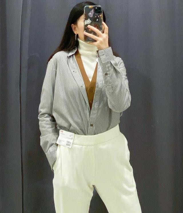今年叠穿这种搭配方式还真的是挺流行的,就算你是搭配小白也能轻松应对。白色高领毛衣,外面选择了针织衫+衬衫,虽然各自的颜色不同,但由于都是比较简约的单品,所有组合在一起并没有什么不妥,反而很时髦高级。下身选择的白色牛仔裤,恰到好处与内搭的白色高领毛衣相衬,这两者起到了一个色彩呼应。
