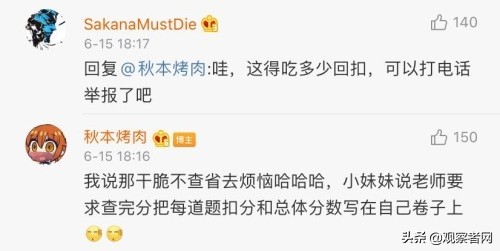 她还透露,老师不在试卷上批改,但要求他们查完分数把具体扣分情况和总分写在自己卷子上,也就是变相强制他们去APP上付费查成绩……