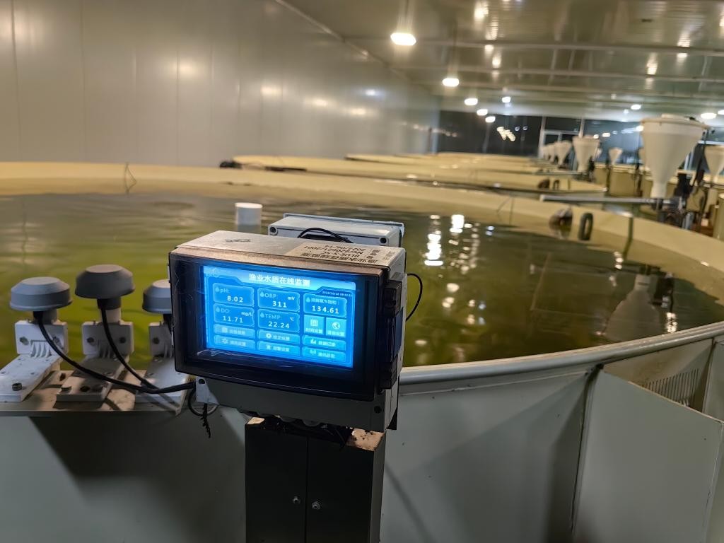 微山湖现代渔业产业园的智慧渔业车间里,水质监测设备正在工作。新华社记者邵琨 摄