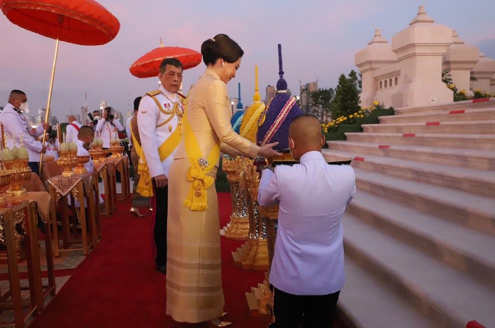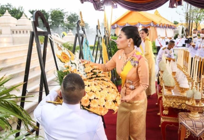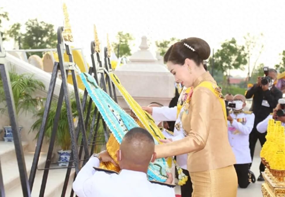 这段时间泰国王室公务数量增加,各种祭祖仪式纷繁复杂,苏提达都能成功应对。这次祭拜普密蓬国王的时候,苏提达一袭金色礼服好惊艳,搭配招牌微笑简直美绝了。