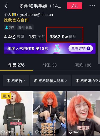 而毛毛姐就是例外,他能在网络上爆红,也学会在网络上生存,保有三千多万粉丝也不是每一个人,每一个团队都能做到的。