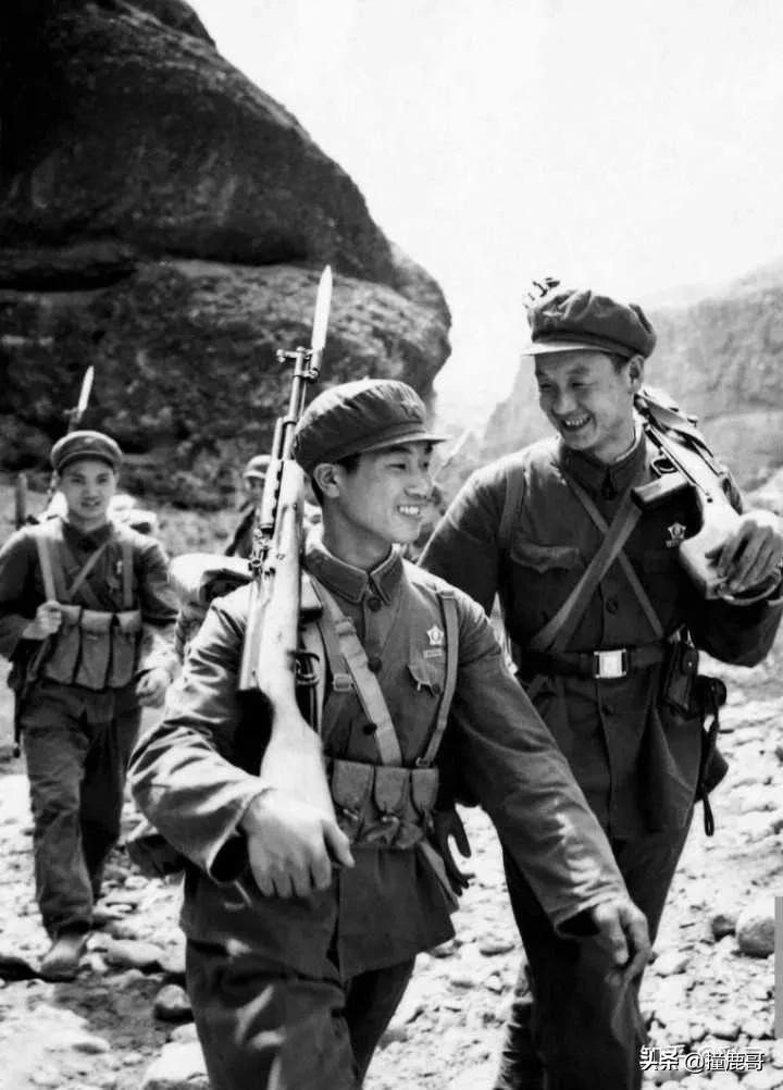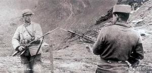 中印边境战争期间的中印两国士兵,其中图中的中国士兵手持56式半自动步枪,印度军士兵则手持L1A1半自动步枪