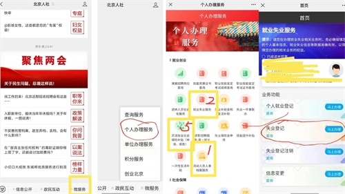 登录:微信——公众号——北京人社公众号——个人办理业务——就业失业服务——失业登记。