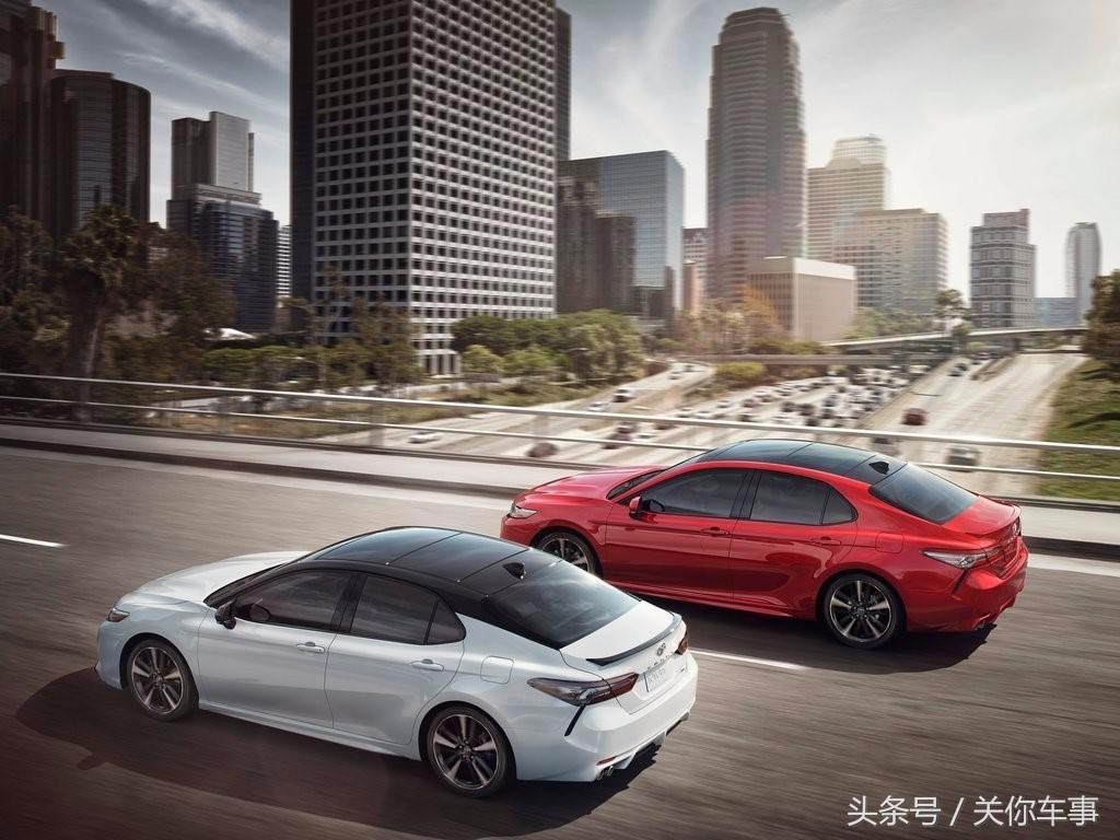 运动款(SE和XSE)在外观上更是彻底贯彻了运动化的理念。车头两侧凶狠的的下进气口、比LE和XLE款大一寸的19寸轮圈银黑双色轮圈和车尾的底部扰流板与四出排气孔,都让这辆家庭轿车看起来更像是NASCAR赛车。至于更偏商务的LE和XLE,前脸下部横条式的进气格栅则更像是雷克萨斯现款LS系列。说不定再下一代的凯美瑞也会用上纺锤格栅呢!