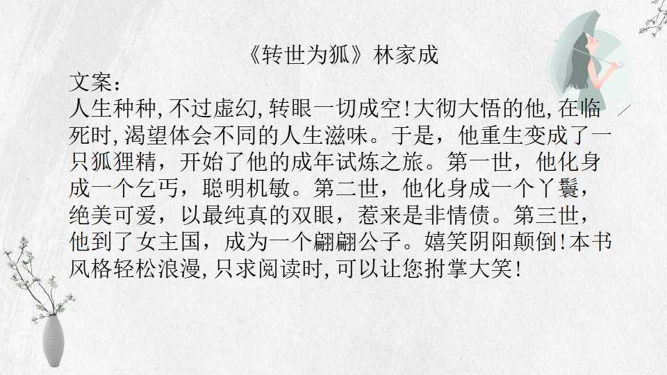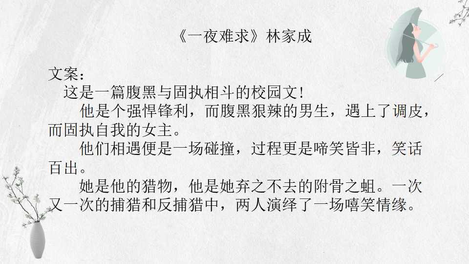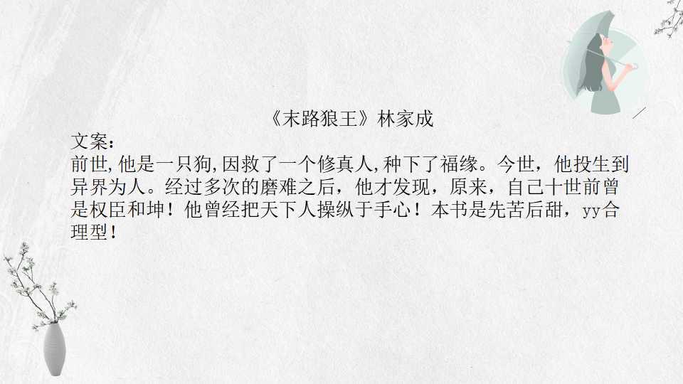 今日安。今天整理推荐林家成的小说,希望你喜欢。