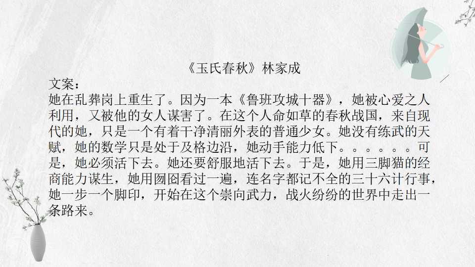 4、 《玉氏春秋》林家成 80万字 BG 完结