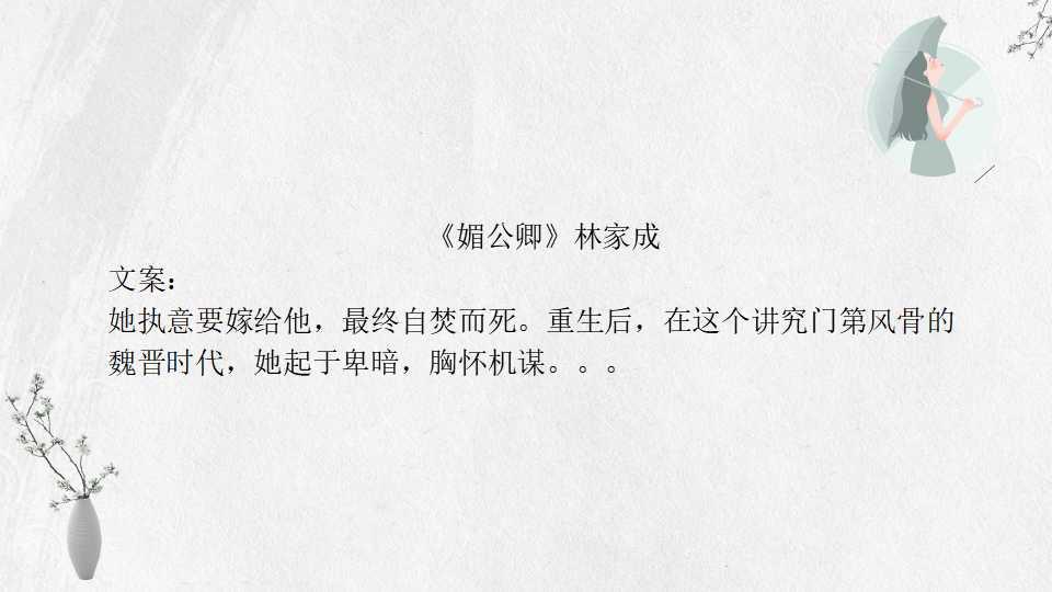 1、 《媚公卿》林家成 75万字 BG 完结