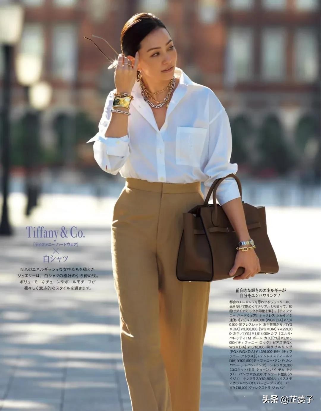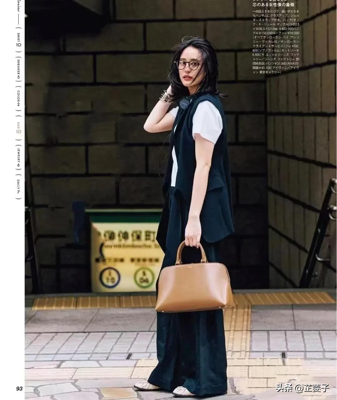 搭配了焦糖色的手提包,也算是同色系搭配