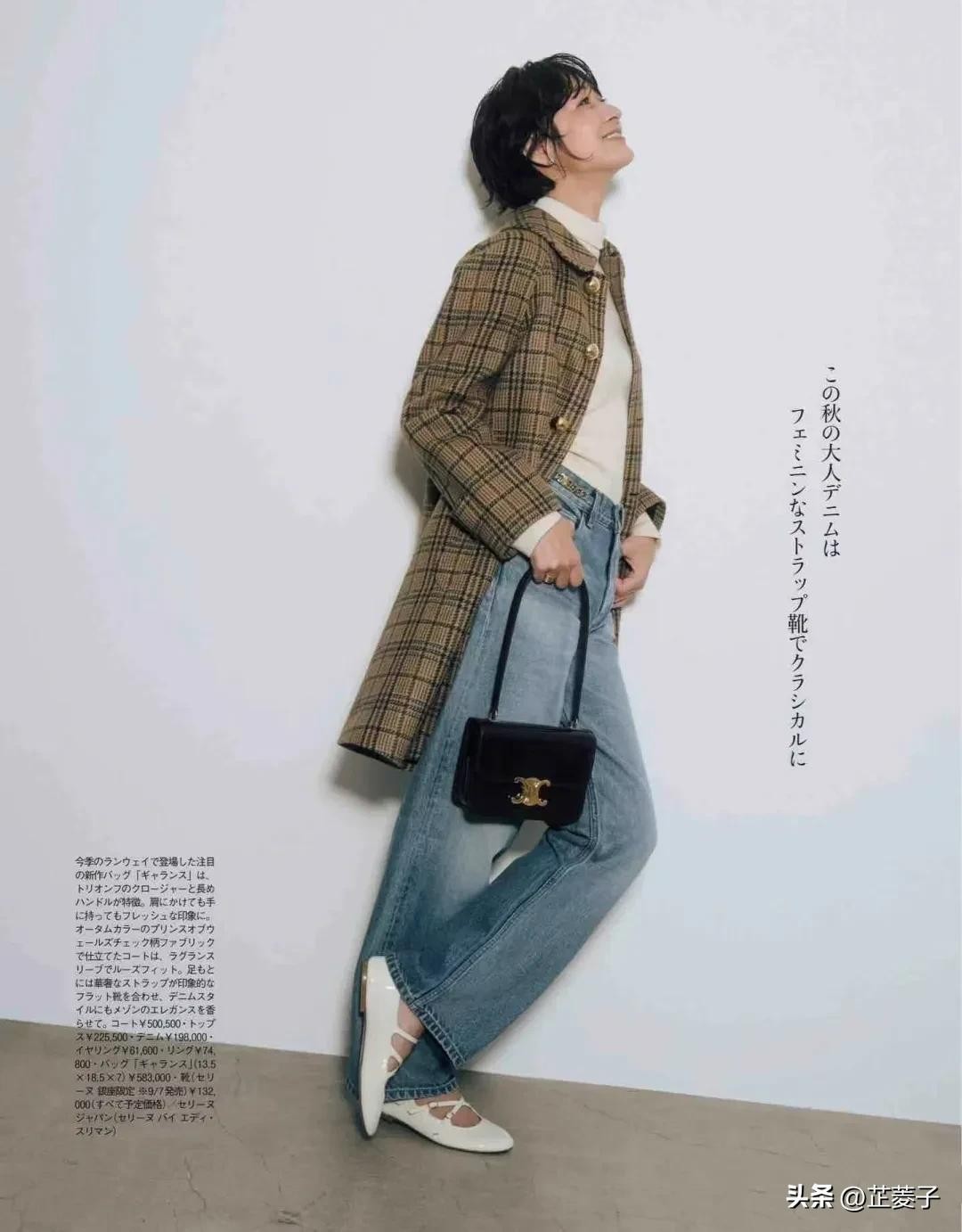 卡其格子风衣+牛仔裤