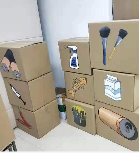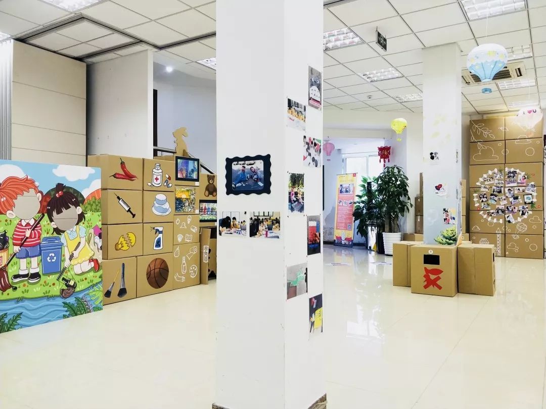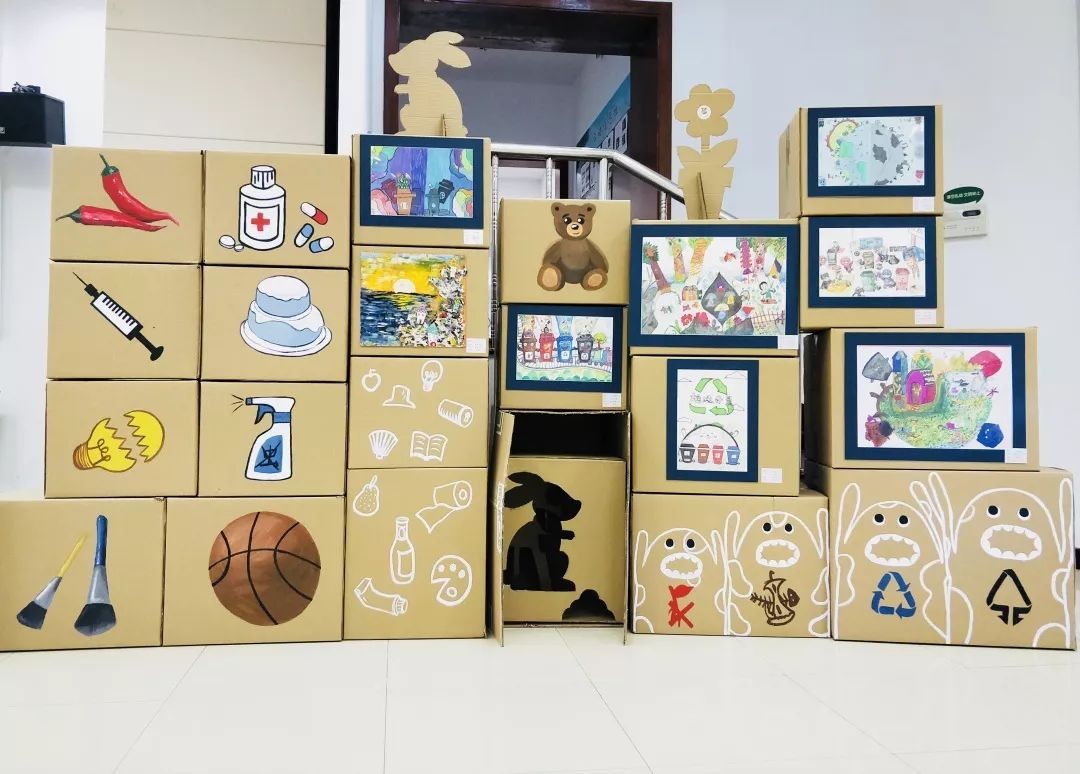 孩子们以此创作出的一幅幅画作,充满童趣却引人深思。在此基础上,以日常可见可回收的纸箱为构件,搭建出一个充满乐趣又意味深长的童话世界。