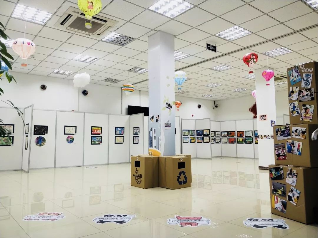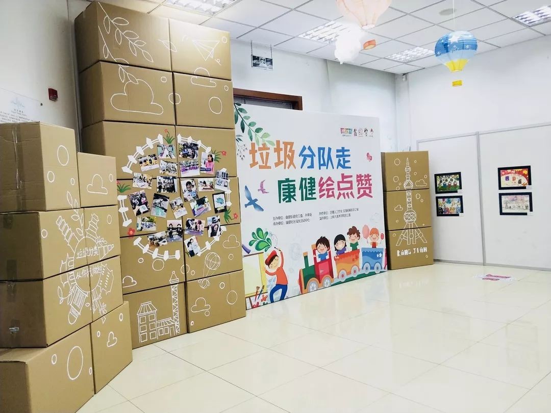此次画展,由康健外国语实验小学、康宁科技实验小学、樱花园小学、上师大一附小、上海世界外国语小学、上海市中国中学、康健外国语实验中学等7所中小学107名学生和100多名社区儿童,用他们手中的画笔,描绘出他们心目中的垃圾分类后的乐美康健!